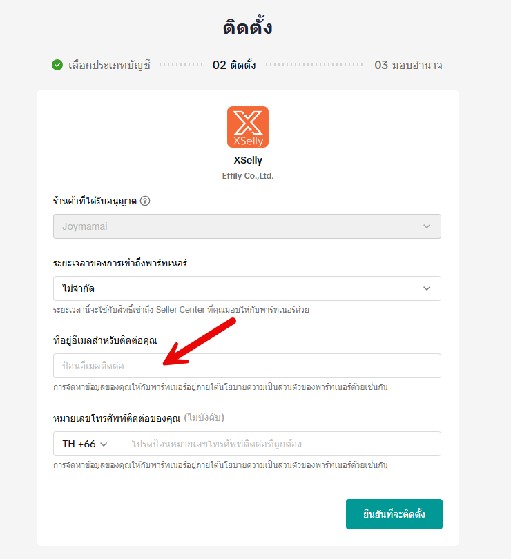 8. มอบอำนาจให้ XSelly สามารถซิงค์ออเดอร์ และ สต๊อกสินค้าได้ จากนั้นกด มอบอำนาจ