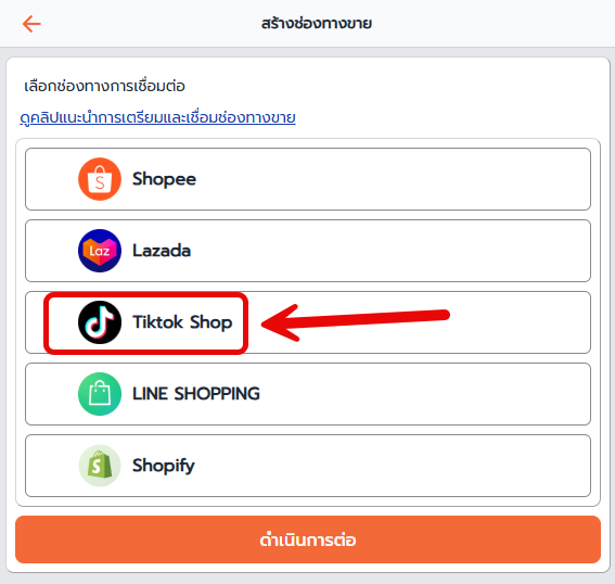 2. เลือกช่องทางขาย TikTok เพื่อทำการเชื่อมต่อ
