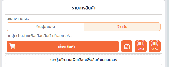 3. เพิ่ม รายการสินค้า โดยเลือกจากร้าน….