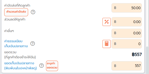 – ค่าธรรมเนียมเก็บเงินปลายทาง
