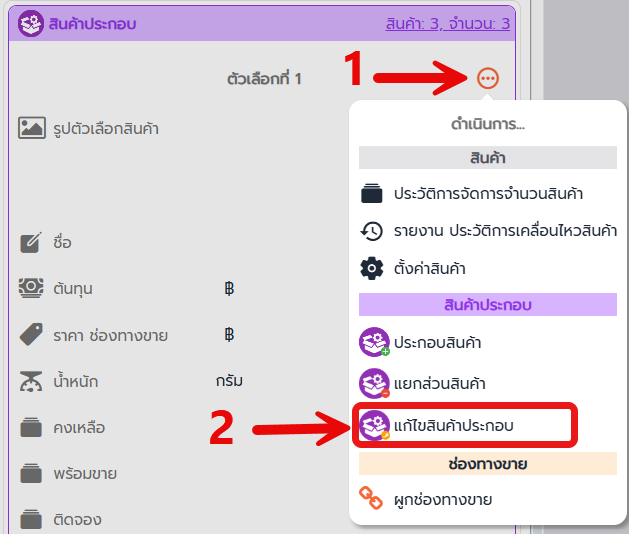 1. กดที่จุดไข่ปลา … เลือก แก้ไขสินค้าประกอบ