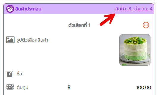เลือกตัวเลือกสินค้าประกอบที่ต้องการแก้ไข
