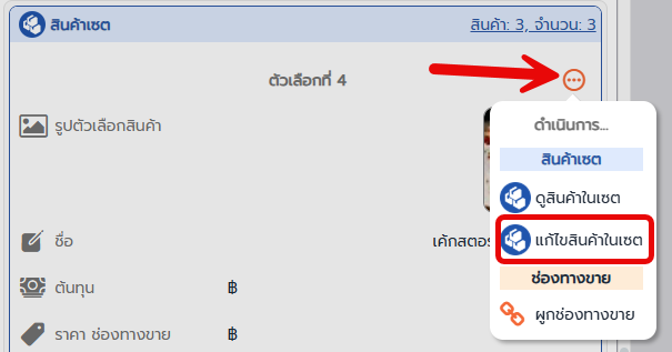 1. กดที่จุดไข่ปลา … เลือก แก้ไขสินค้าในเซต