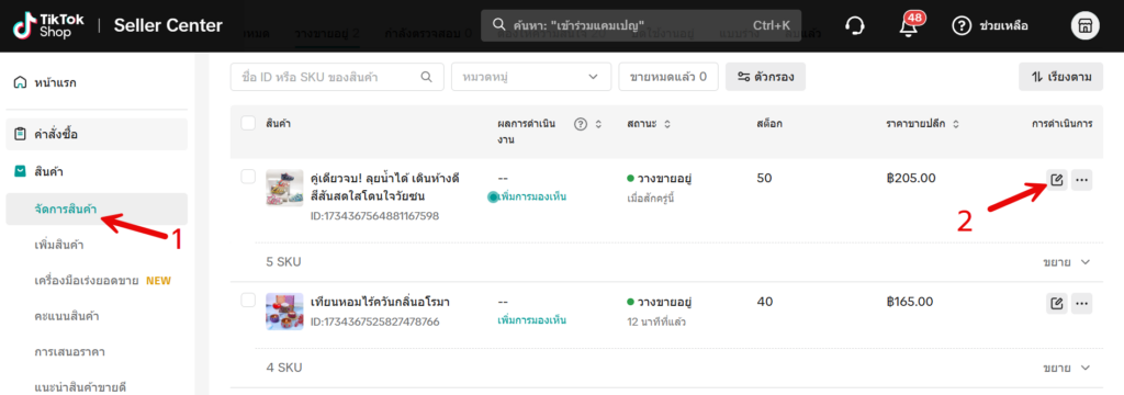 วิธีแก้ไขรหัสสินค้า (SKU) บน TikTok แบ่งได้ 2 วิธี คือ
