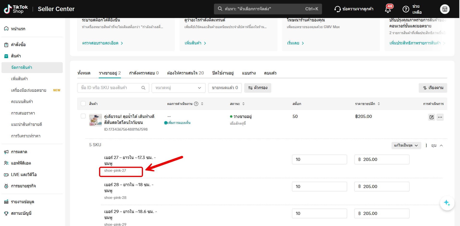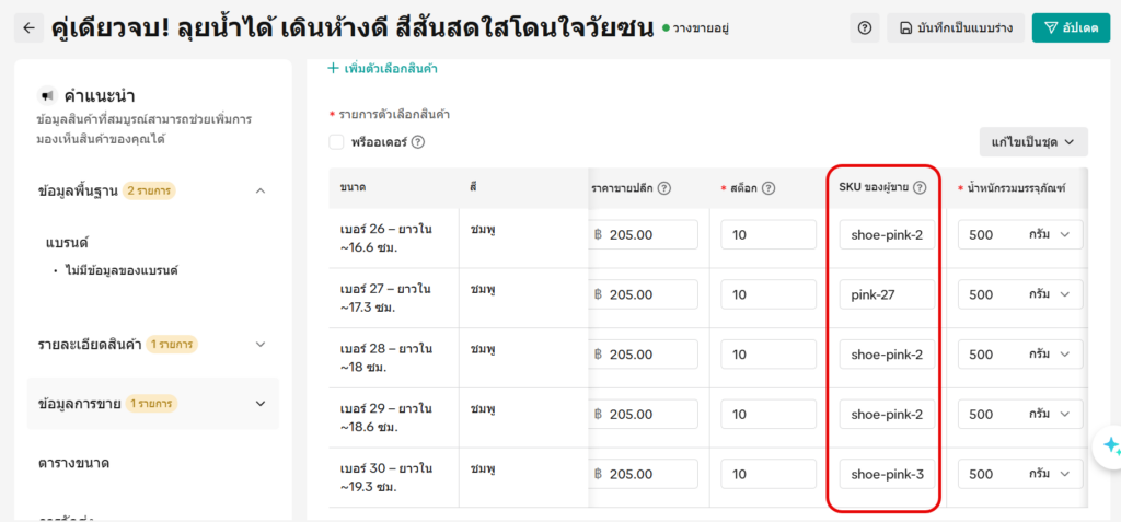 แนะนำฟีเจอร์ แก้ไข SKU สินค้า