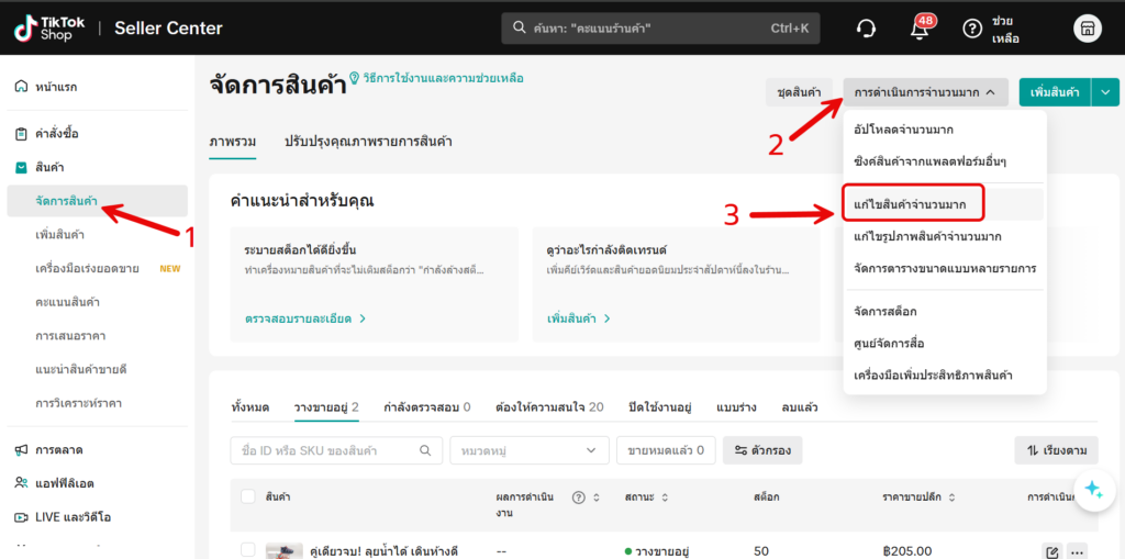 - เลือก แก้ไขสินค้าในจำนวนมาก