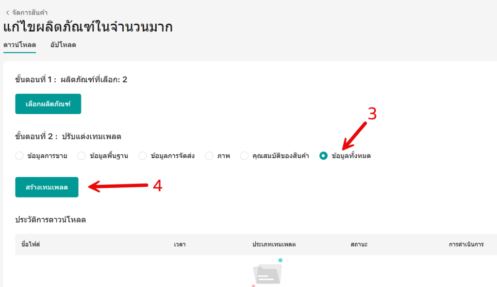 (สำคัญมาก ถ้าจะให้แก้ SKU ได้) - กด สร้างเทมเพลต
