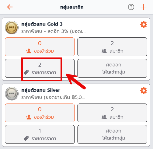 2. แตะที่ รายการราคา เพื่อ ตั้งค่ารายการราคาของในแต่ละกลุ่ม