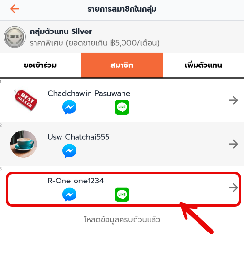 2. แตะที่ สมาชิก ใช้ตรวจสอบรายชื่อสมาชิกและแก้ไขสมาชิกในกลุ่มตัวแทนขาย