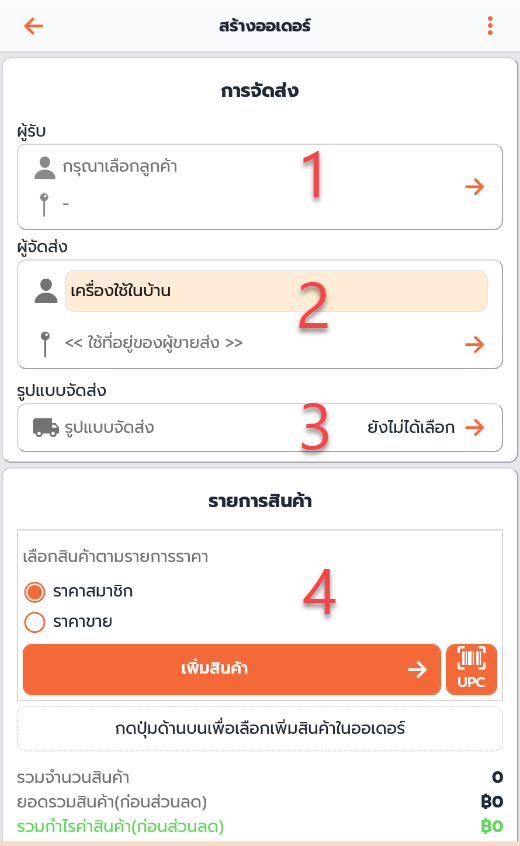 ขั้นตอนการสร้างออเดอร์