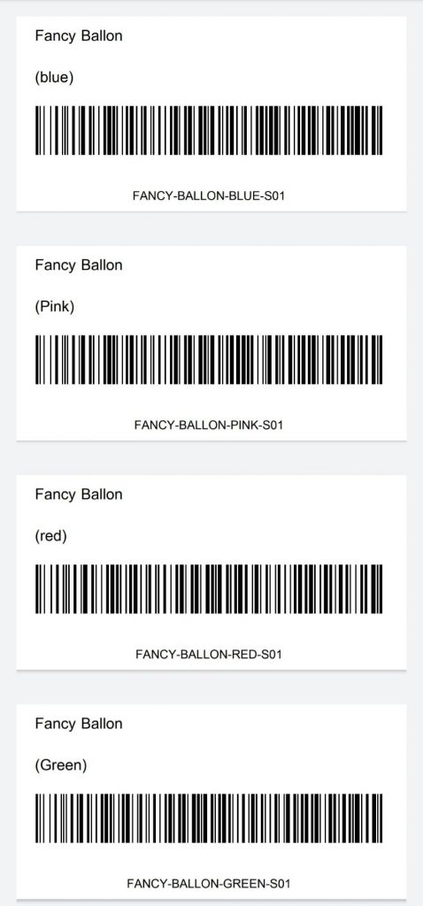 เมื่อลูกค้าต้องการพิมพ์ บาร์โค้ดสินค้า ลูกโป่งสีน้ำเงิน จำนวน 10 ชิ้น ให้ลูกค้ากดที่ตัวตั้งค่าเครื่องพิมพ์ เลือกลำดับหน้ากระดาษ เช่น พิมพ์หน้า 1 ลูกโป่งสีน้ำเงิน จำนวนคัดลอก 10 ครั้ง ผู้ใช้จะได้ ตัวบาร์โค้ด ลูกโป่งสีน้ำเงิน จำนวน10 ชิ้น