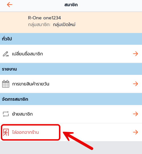 3. กด เลือกชื่อสมาชิกของตัวแทน ที่ต้องการจะลบออกจากร้าน