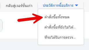 3. เมื่อชำระเสร็จแล้ว กด ประวัติการซื้อบริการ มุมบนขวามือ เลือก คำสั่งซื้อทั้งหมด