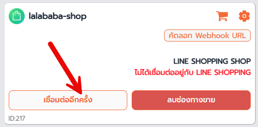 1. หน้า รายการ ช่องทางขาย กดปุ่ม เชื่อมต่ออีกครั้ง