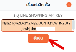 3. วาง API Key ลงในช่อง ระบุ LINE SHOPPING API Key กดปุ่ม ยืนยัน