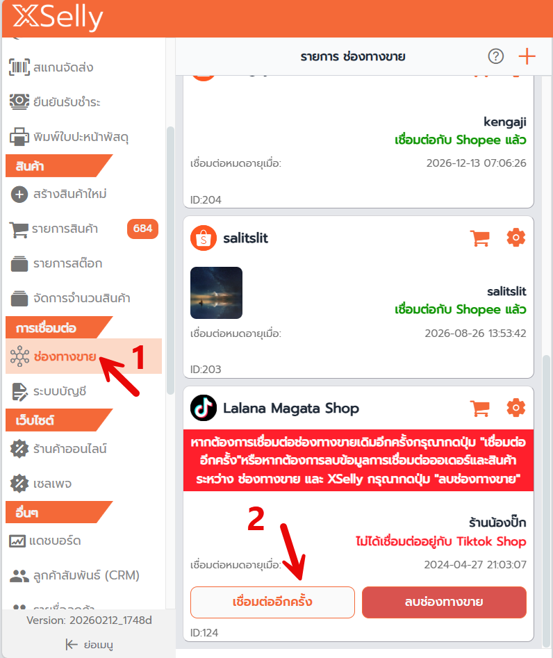 เชื่อมต่อกับ TikTok Shop แล้ว ย้อนกลับไปดูที่ช่องทางขายใน XSelly