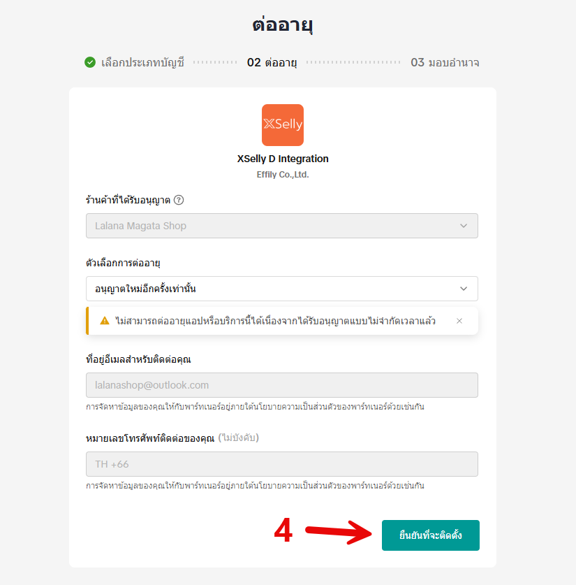 การต่ออายุจะทำให้ระบบสามารถเชื่อมต่อข้อมูลระหว่าง XSelly และ Tiktok ได้ ซึงเวลาสูงสุดที่ Tiktok ให้คือ 365 วัน