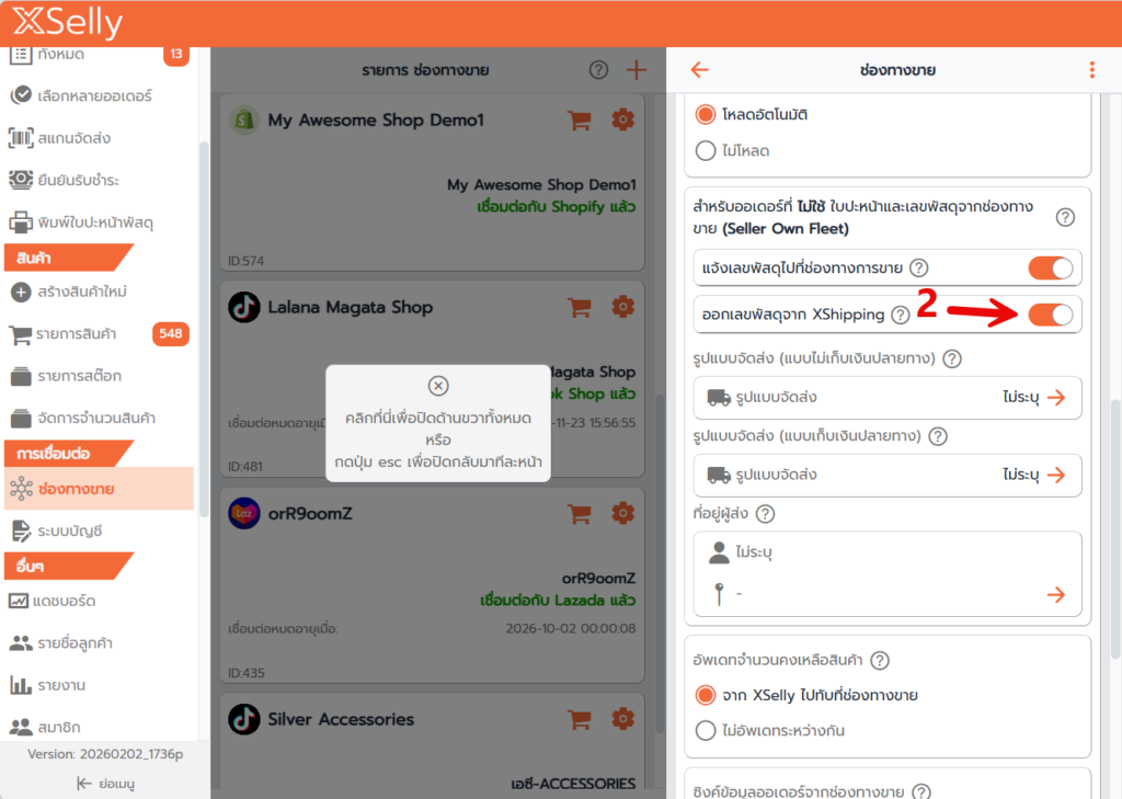 ขั้นที่ 1 — เปิดการแจ้งเลขพัสดุไปยังช่องทางขาย
