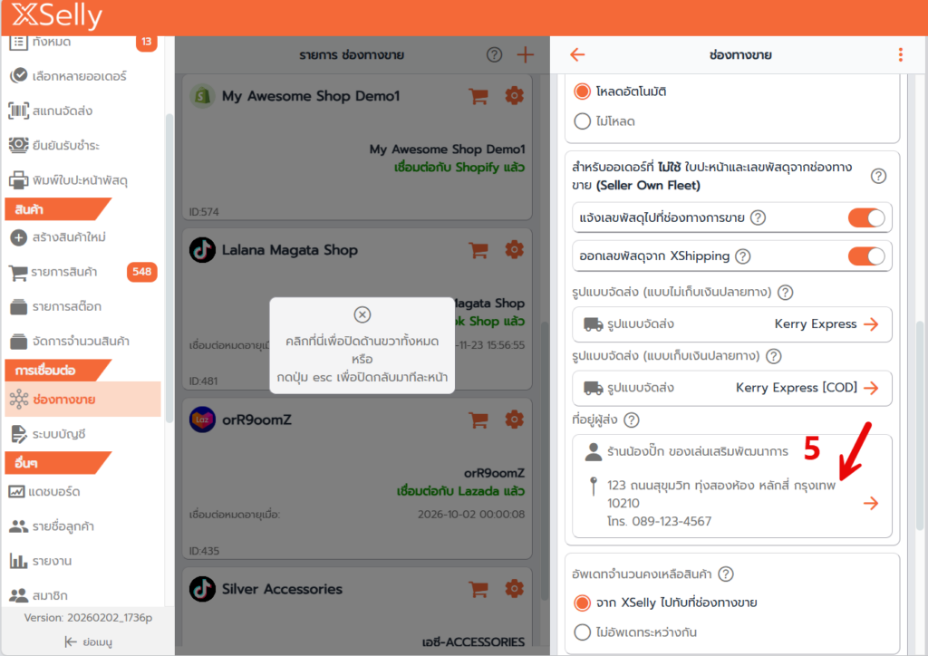 แอป XSelly → การเชื่อมต่อ → ช่องทางขาย