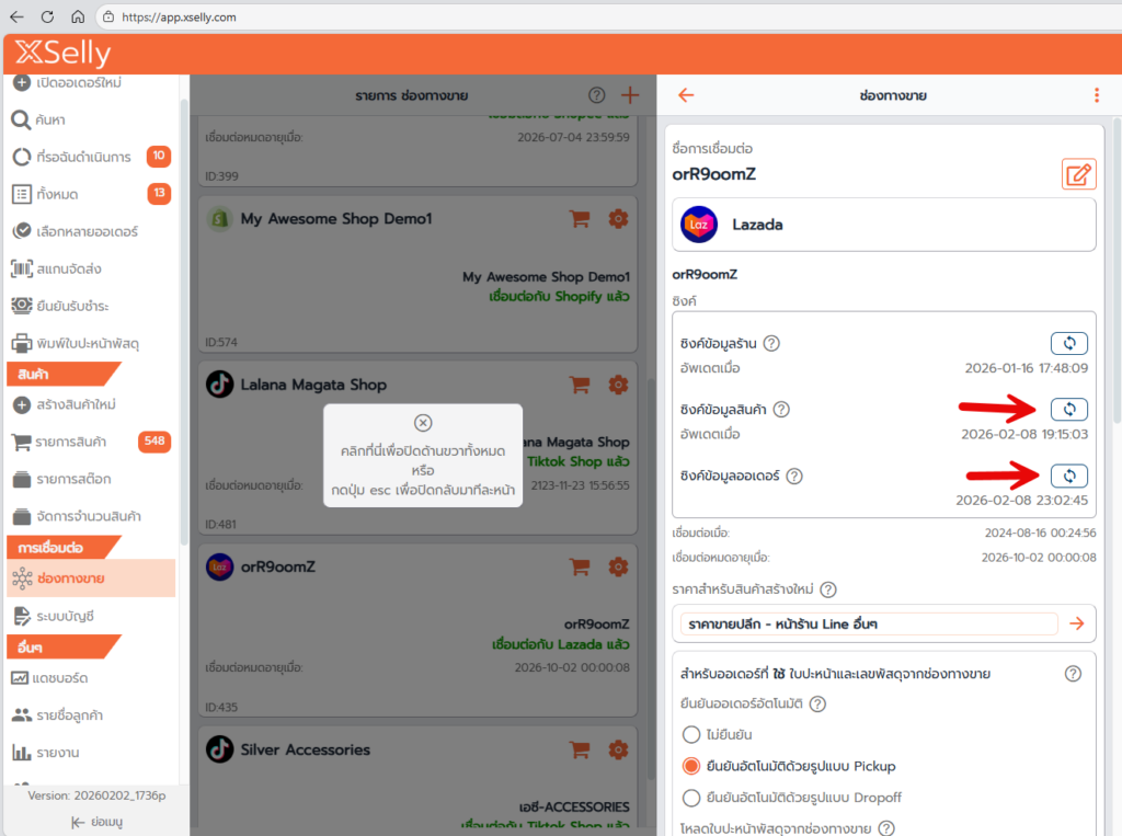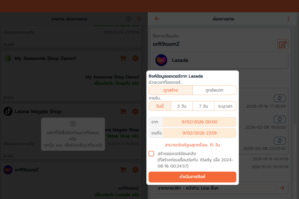 การซิงค์ข้อมูล คือการดึงข้อมูลจากช่องทางขายเข้ามาใน XSelly