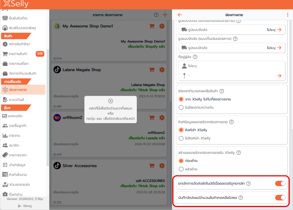 - เลือกช่องทางขายที่ต้องการตั้งค่า
