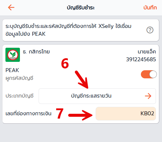 ขั้นตอนที่ 2: ผูกรหัสบัญชี PEAK