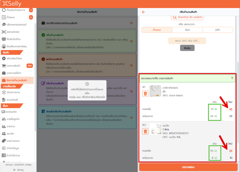 - เลือกสินค้าที่ต้องการปรับ แล้วกรอกจำนวนใหม่ได้ทันที