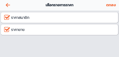 ตัวอย่าง เลือก ราคาขายปลีก และ ราคาสมาชิก และกด ตกลง เพื่อบันทึก