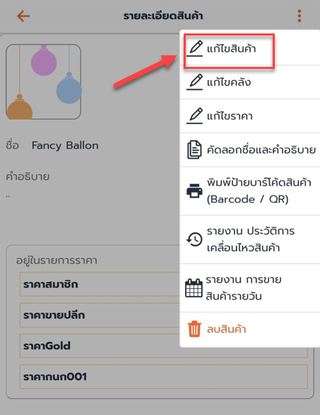 3. เลือกสินค้าที่ต้องการ หลังกจากนั้น เลือก แก้ไขสินค้า