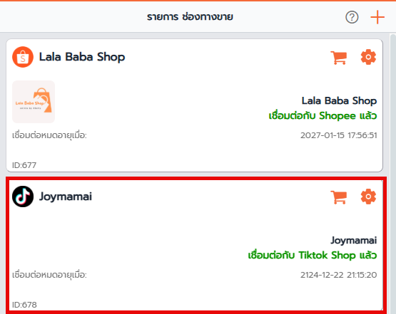 เชื่อมต่อช่องทางขายสำเร็จ