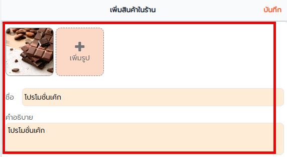 1. กรอกชื่อสินค้า และคำอธิบายสินค้า