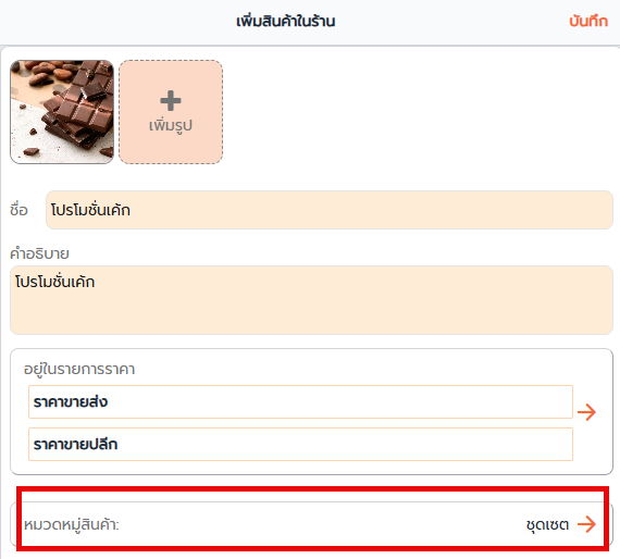 3. หากมีหมวดหมู่สินค้า เลือก หมวดหมู่สินค้า ที่ต้องการให้รายการสินค้านี้อยู่เพื่อให้สามารถค้นหารายการสินค้าผ่านหมวดหมู่ได้