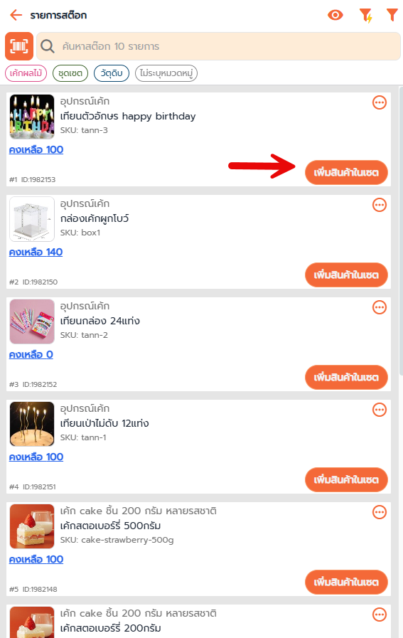 2.1 เพิ่มสินค้าเซต