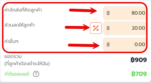 กรอกข้อมูลเพิ่มเติมสำหรับออเดอร์นี้ เช่น ค่าจัดส่ง ส่วนลด อื่นๆ
