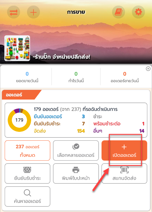1. กดที่ เปิดออเดอร์