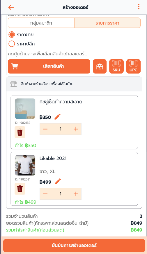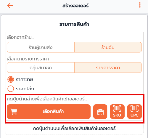 2. เลือกสินค้า หรือ แสกนบาร์โค้ดสินค้า