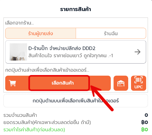 3. เลือกร้าน ร้านผู้ขายส่ง ที่ต้องการสร้างออเดอร์กดเลือกสินค้า