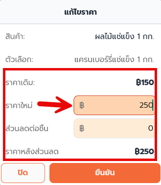 4. แก้ไขราคาขายใหม่ หรือ ส่วนลดสินค้าต่อชิ้น