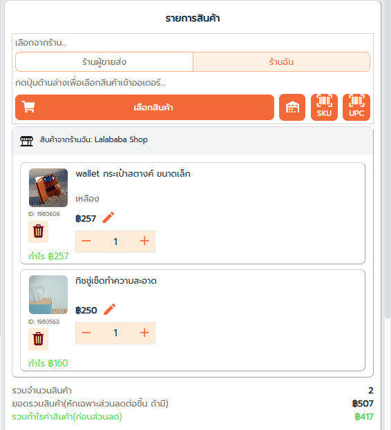 3. เพิ่ม รายการสินค้า โดยเลือกจากร้าน….