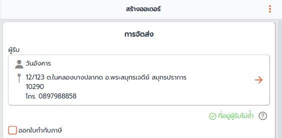 1. เพิ่ม ข้อมูลที่อยู่ผู้รับสินค้า