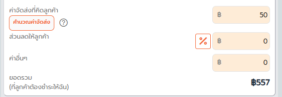 4. กรณีหากมี ค่าจัดส่ง ส่วนลูก ค่าอื่นๆ ที่ต้องคิดให้ลูกค้า ใหใส่ตามช่องที่กำหนดไว้ระบบจะคำนวนยอดที่ลูกค้าต้องชำระให้ทันที