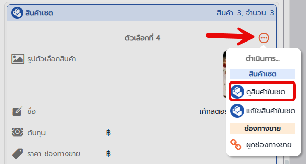 1. กดที่จุดไข่ปลา … เลือก แก้ไขสินค้าในเซต