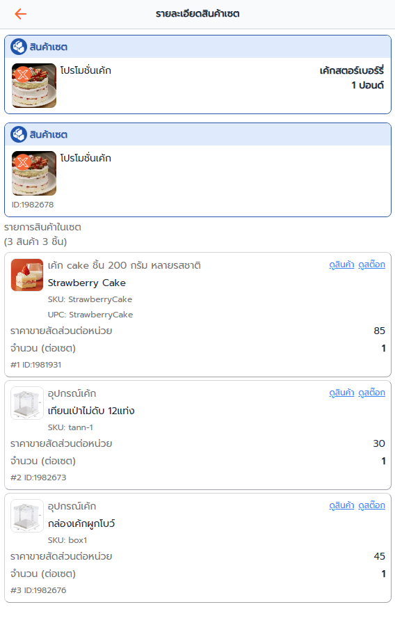 2. แก้ไขข้อมูลสินค้าในเซต ตามต้องการและกด บันทึกสินค้าเซต