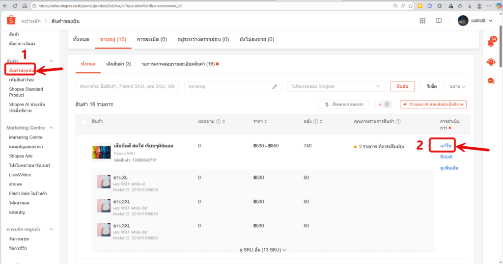 - กดปุ่ม “แก้ไข” ด้านขวาของสินค้า