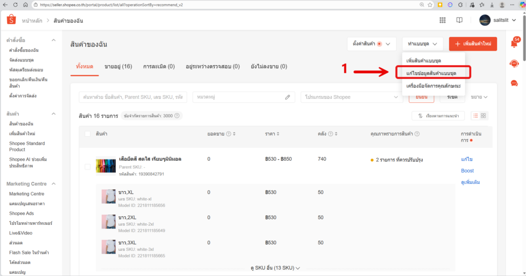 ขั้นตอนที่ 1 : เข้าเมนูแก้ไขสินค้าแบบชุด