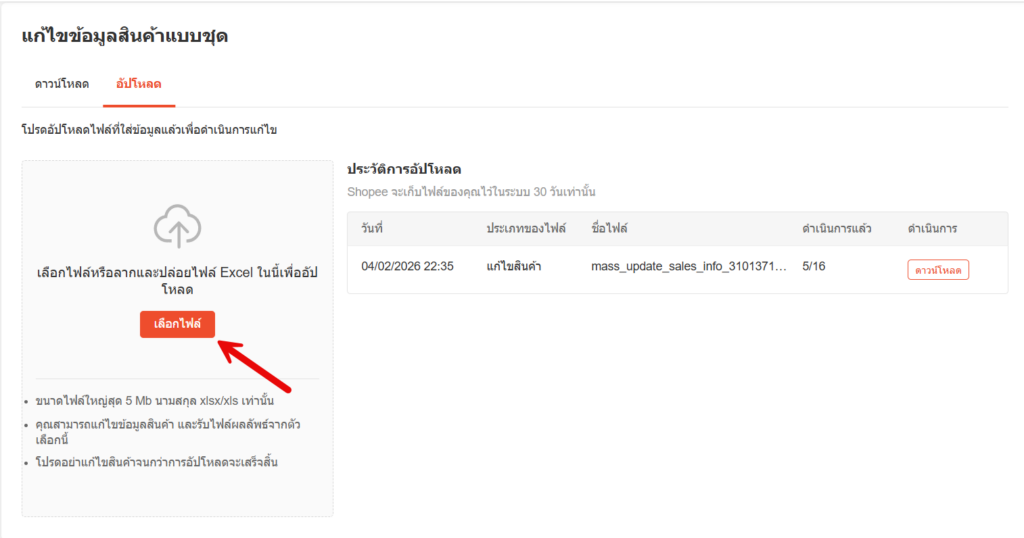 ขั้นตอนที่ 4 : อัปโหลดไฟล์กลับเข้า Shopee