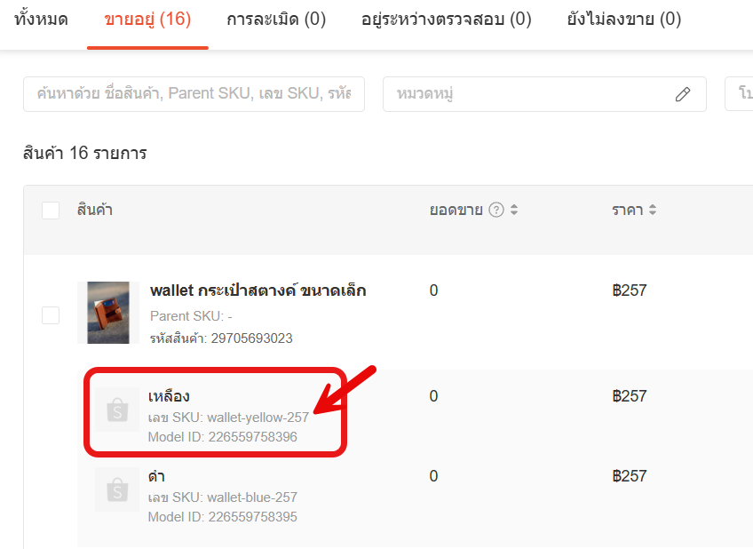 - ใส่ SKU ใหม่ให้ตรงกับตัวเลือกสินค้า