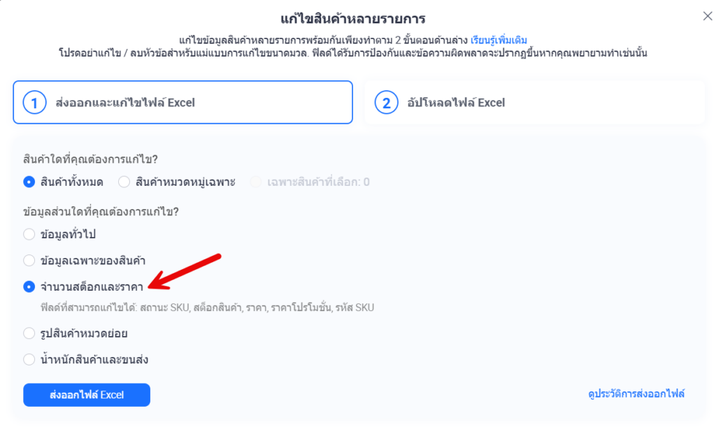 วิธีที่ 2 : แก้ไขรหัสสินค้า (SKU) แบบชุดด้วย Excel (Mass Update)