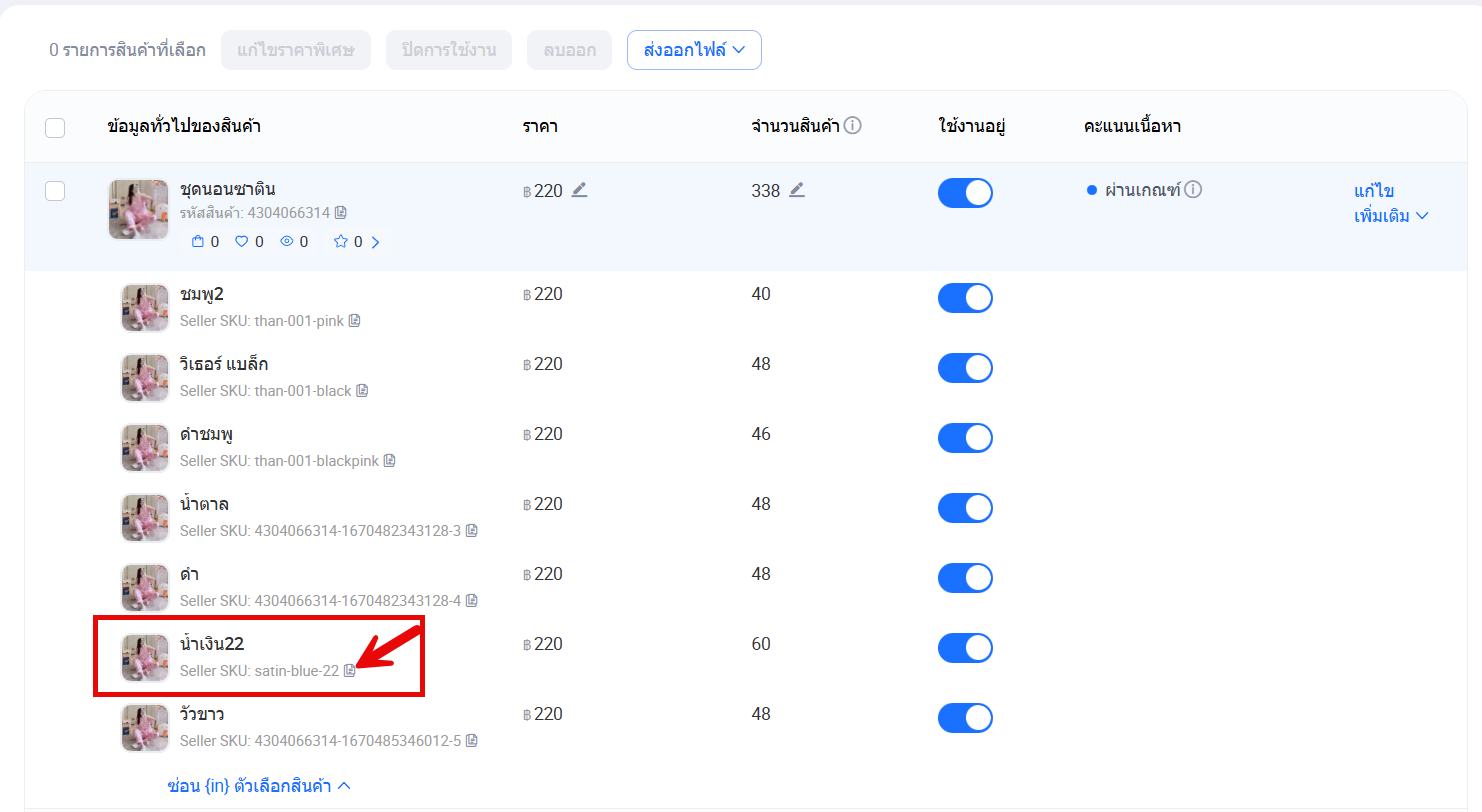 ð SKU ต้องตรงกันทุกระบบ เพื่อให้ระบบผูกสต๊อกสินค้าจากรหัสสินค้า SKU ที่เหมือนกัน