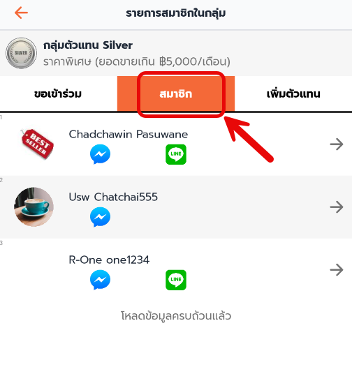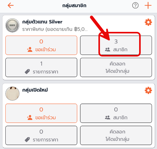 2. แตะที่ สมาชิก ใช้ตรวจสอบรายชื่อสมาชิกและแก้ไขสมาชิกในกลุ่มตัวแทนขาย